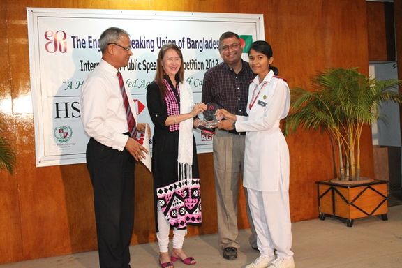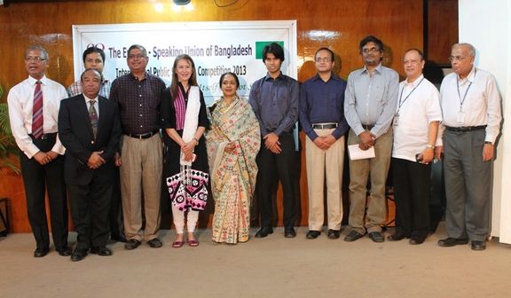 The English Speaking Union of Bangladesh organized the grand final of the national level International Public Speaking Competition 2013 held in the AIUB auditorium on March 09, 2013. It was an exciting event that witnessed talented young people from 14 institutions (cadet colleges and universities) demonstrate their command of English. The theme of the competition was 'A House Divided against Itself Cannot Stand”.