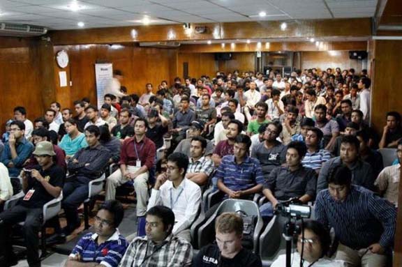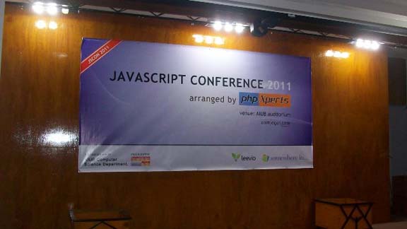 A tech event called JAVASCRIPT CONFERENCE 2011 (JSCon’11) was organized by ‘PHPExpert’ group with the association of Department of Computer Science, American International University-Bangladesh. It was held at AIUB auditorium on September 17, 2011 Saturday from 3:00 PM to 8:35 PM. There were about 320 people who are involved in different software development arena, attended in the thrilling event. The program was inaugurated by Professor Dr. Tafazzal Hossain, Dean, Faculty of Science and Information Technology. There were 6 (six) Sessions, 12 (twelve) Speakers, and almost 6 (six) hours of non-stop Javascript insanity. This video of the program was lively telecasted by Computer Jagat.