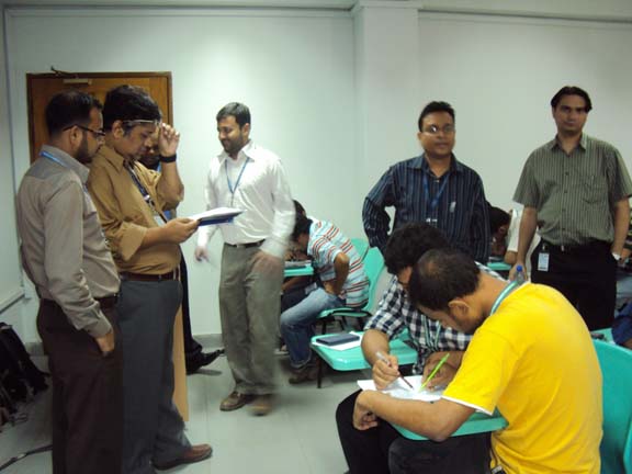 The Department of Finance has been organizing Finance Quiz Contest every semester. As part of the process, this semester’s (Spring 2010-11) contest was launched on 11th April 2011 (Monday). The contest was inaugurated by Dr. Matiur Rahman, Associate Dean, FBA; Dr. Ehsanul Huda, Director, BBA Program; and Dr. Nisar Ahmed, Director, MBA Program. A total of 33 groups (two members in a group) participated in the first round from which 10 groups were selected for the second round, which was held on the same day. After a hard-fought second round, four teams have been selected for the grand finale, which will be held in the AIUB auditorium on Sunday, April 17th, 2011 at 12:30 pm. AIUB Business Club (ABC) has been helping in organizing the event from the beginning.