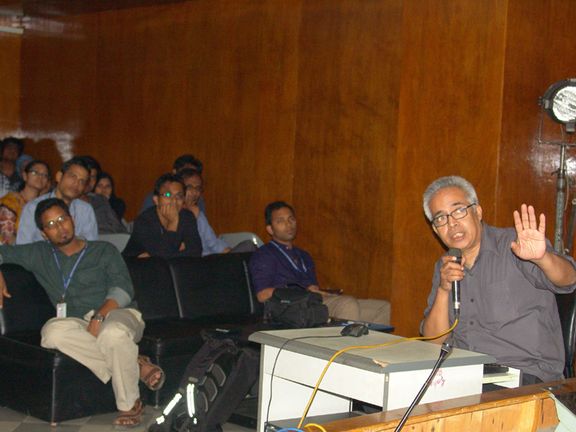 Award-winning German Architect Abdullah Motaleb gave a lecture at AIUB auditorium last Thursday, March 31, 2012 for the architecture students. Ar. Motaleb is co-founder of Motaleb Architekten – a, architecture firm based in Berlin. He presented some of his major projects including award winning competition entry for Indian Embassy in Berlin and shared his thoughts and views with the audience. The venue was full packed with students as well as faculties. They enjoyed the lecture very much. Department Coordinator M. Arefeen Ibrahim was present there on this occasion. He appreciated the excellent quality of Ar. Motaleb’s architecture and thanked the architect on AIUB’s behalf for delivering such an interesting lecture.