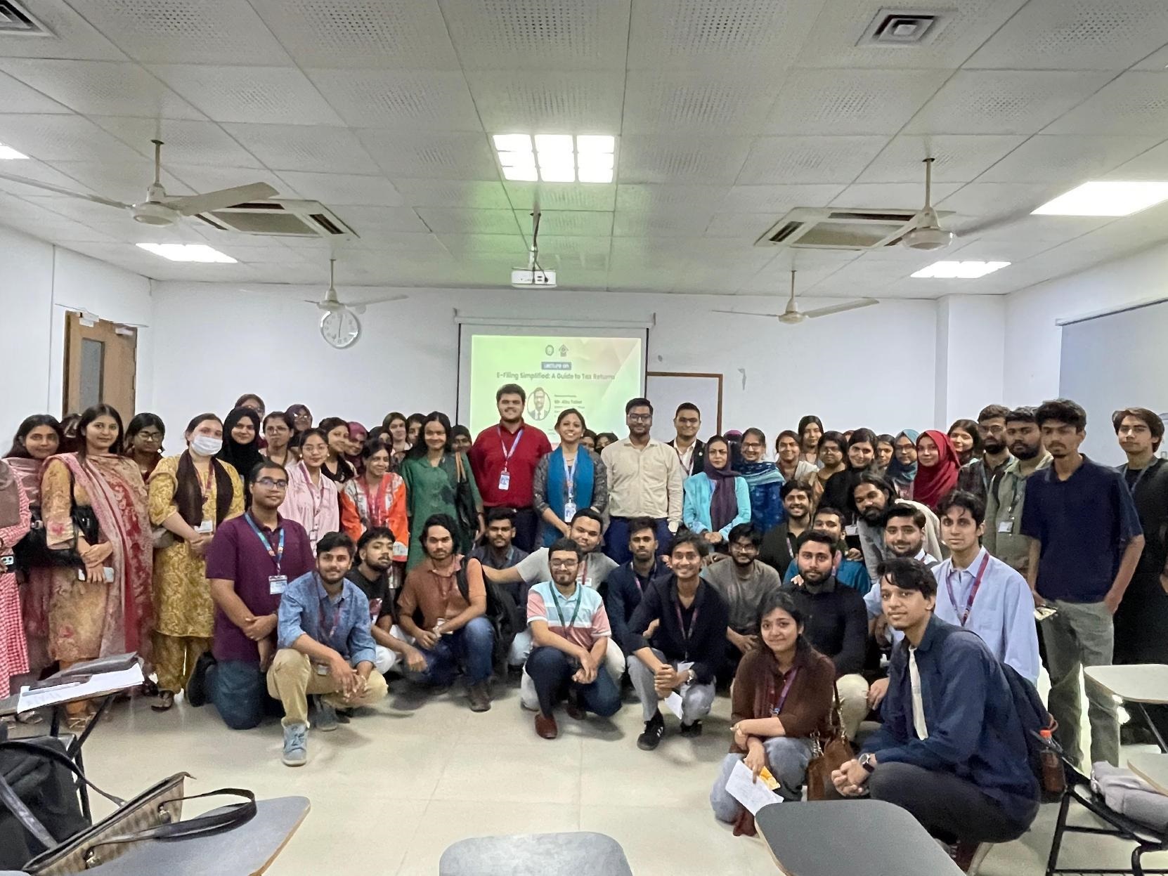 During the session, students were introduced to the fundamentals of income tax, the steps involved in filing tax returns electronically, key documentation requirements, and the benefits of adopting digital systems for tax compliance. The lecture also emphasized the role of taxation in national development and the responsibilities of citizens in contributing to public finance.