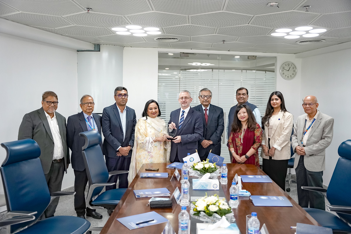 During the official meeting with H.E. Mr. Michael Miller, key topics for future collaboration between AIUB and the European Union were discussed, including to expand academic cooperation through greater participation in Erasmus+, Horizon Europe, and Jean Monnet programs, alongside two-way student and faculty mobility; strengthen climate and research collaboration via joint platforms on sustainability