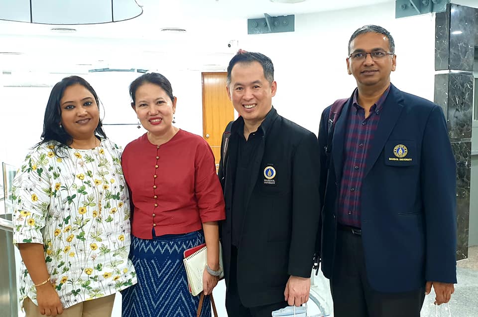 In line with Mahidol University’s thrust for internationalization, a team of key officials visited AIUB to explore possible partnership in the academic programs on the 25th of September 2018. The delegation included the Dean, Prof. Patcharee Lertrit, the Deputy Dean for International Language Development, Dr. Somchai Trakarnrung, and the Assistant Dean for International Relations, Dr. Aug Win Tun, all representing the Faculty of Graduate Studies at the Mahidol University, Thailand. They were accompanied by Ms. Warasan Binte Israil, the Secretary to the Ambassador, and Ms. Lalita Adulyakittiphaisan, the Foreign Relations Officer, as the representatives of the Royal Thai Embassy, Dhaka. AIUB was represented by the Vice President for Academics and Dean for Faculty of Business Administration, Dr. Charles C. Villanueva, along with the Program Directors for the Undergraduate and Graduate Programs from the Faculty of Business Administration, Dr. Nisar Ahmed and Ms. Farheen Hassan. The discussion was focused on the various opportunities for collaboration between the two institutions, ranging from the graduate programs to semester exchanges, even exploring options to integrate faculty exchanges, administration development, certification courses, etc. with the other Faculties of Engineering, Science, and Arts within both the universities. After the meeting, the visitors paid a courtesy visit to the Chairman of the Board of Trustees, Ms. Nadia Anwar, with whom they shared their views on the partnership possibilities that could mutually benefit the students, faculty and staff of both institutions. Both AIUB and Mahidol University are keen on establishing a mutually constructive Memorandum of Understanding (MoU) and look forward to realizing a fruitful collaborative and sustainable relationship.