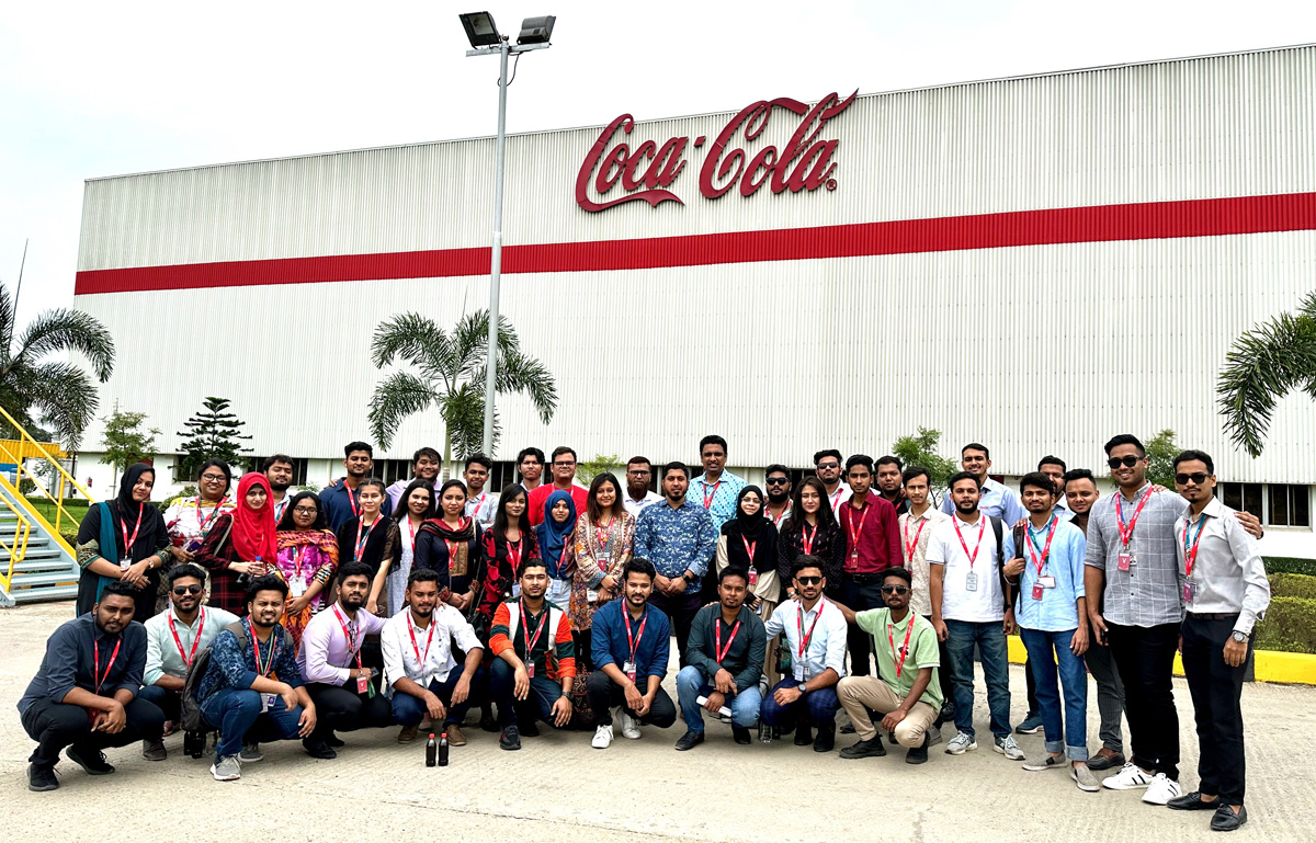 The Department of Marketing, Faculty of Business Administration (FBA), AIUB, organized a study visit to Coca-Cola Bangladesh Beverages (CCBB) Limited’s Bottling Plant in Bhaluka, Mymensingh, on April 01, 2023. As a part of the regular student development program, students from the marketing major courses of ‘Sales Management’ and ‘Product Innovation and Management,’ along with their faculty members, went on to visit the factory to get some practical insights about the plant operations, warehousing, sales & distribution processes of this renowned company.