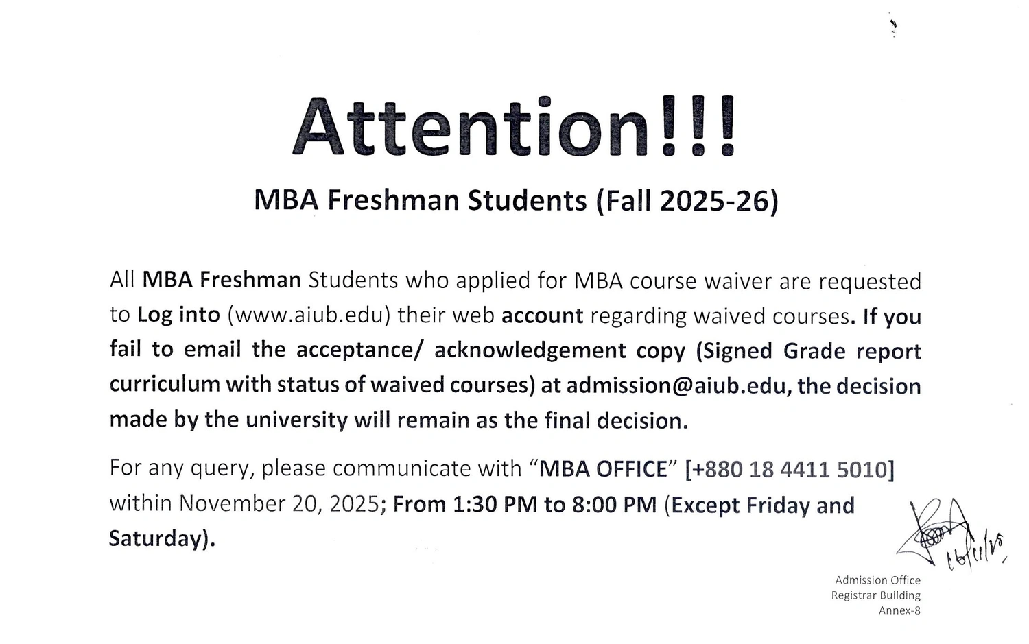 MBA Freshman Students of Fall 2025-26 (Regarding Waived Courses)