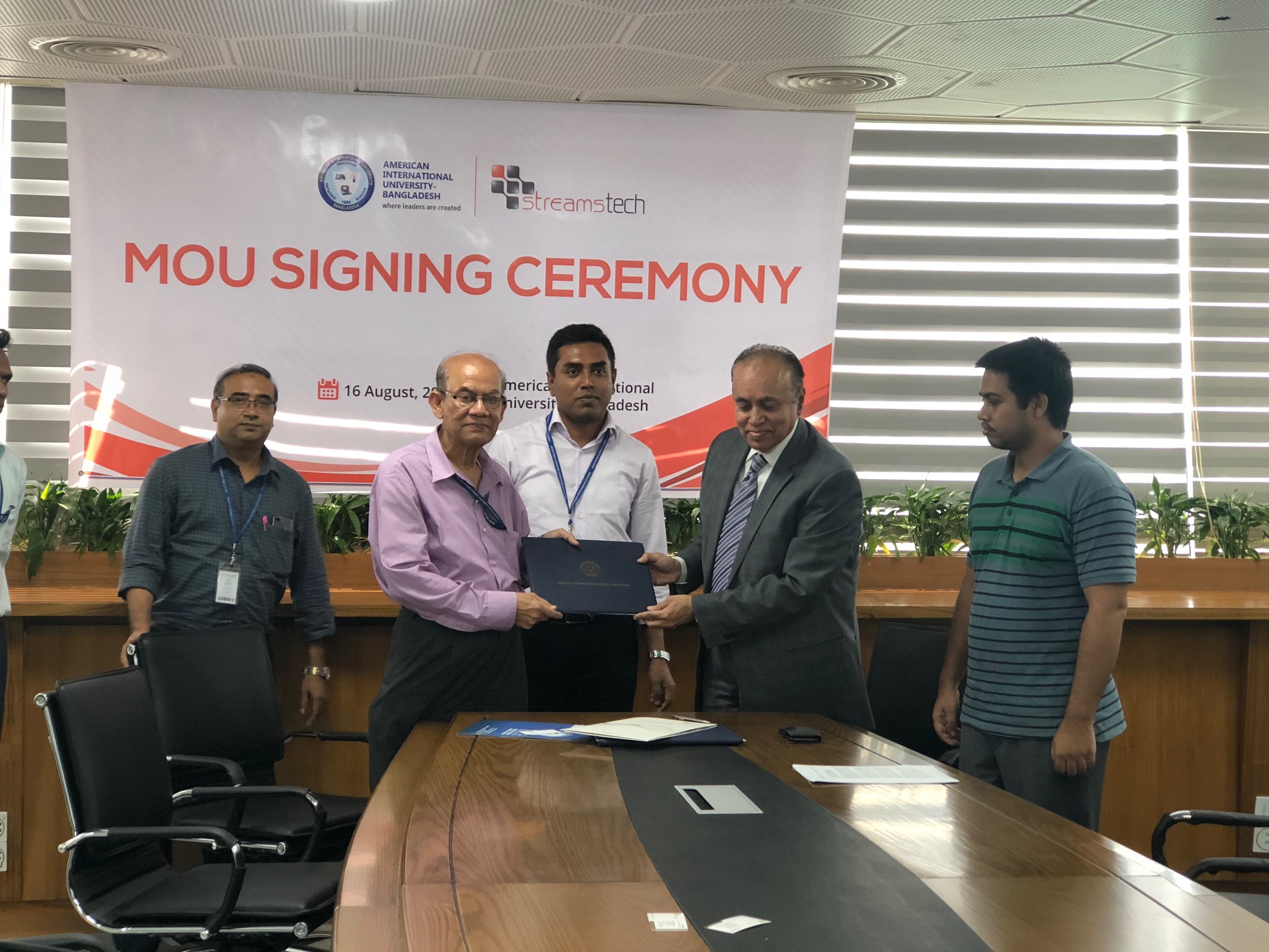 Academia-Industry collaboration is the key to technological advancement and useful innovation for the modern civilization. The American International University – Bangladesh [AIUB] has always moved forward with that very notion in mind. On the 16th of August 2018, AIUB’s Faculty of Engineering signed a Memorandum of Understanding [MoU] with Streams Tech Ltd. [STL], an established software development company, providing full-cycle software engineering, custom application development and system integration services, adding another valuable platform to its existing partnerships that enable its students and faculties to integrate theoretical learning with practical implementations. The signing ceremony was presided over by the Dean of the Faculty of Engineering, Prof. Dr. ABM Siddique Hossain, together with the Associate Dean, Prof. Dr. Md. Abdur Rahman, and the Head of the Undergraduate Program, Prof. Dr. Mohammed Abdul Mannan. Senior Assistant Professor & Special Assistant to the Office of Student Affairs [OSA], Mr. Akram Hossain Chowdhury, and Assistant Professors, Mr. Abu Hena Shatil and Mr. Ahmed Mortuza Saleque were also present. Streams Tech Ltd. was represented by their Head of Business Development, Mr. Kazi Shahed Nabi, along with their Senior Environmental Engineer, Mr. Adil Hassan, and their Business Communication Coordinator, Mr. Mahpara Rob. The initial project has been agreed upon by both parties to realize the MoU on “Energy Efficiency & Demand Management”, which aims to develop the electrical power sector of the country. Together, AIUB and STL will be pooling its resources to coordinate, plan, monitor, evaluate, integrate, and manage the research and development activities of the EPRC Research Funding. With the prospective potential such a collaboration promises, both AIUB and STL is optimistic on the positive outcomes that is expected from the projects, not just for their respective stakeholders, but the nation as a whole. Both institutions look forward to building a long-term partnership that evolves the engineering industry as well as the technology that we need to truly become a Digital Bangladesh.