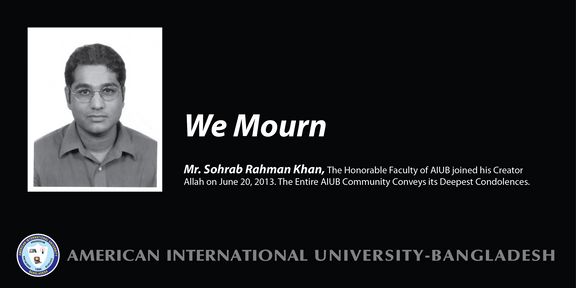 Faculty of Arts and Social Sciences of American International University-Bangladesh (AIUB) organized a Memorial Service for Late Mr. Sohrab Rahman Khan who joined his Creator on June 20, 2013. Mr. Khan was a faculty at the Department of Economics of AIUB who joined the university in May of 2008.