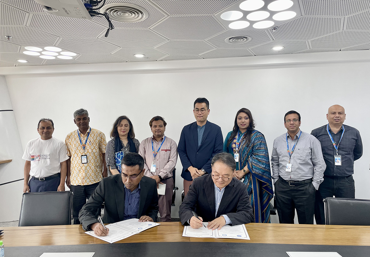 Amplifying their international collaborations for education, the American International University – Bangladesh [AIUB] signed a Memorandum of Understanding [MoU] with the Dongshin University [DSU], Republic of Korea. On 10th April 2023, delegates from DSU arrived at AIUB to discuss the opportunities for collaboration in the form of faculty and student exchange programs, collaborative staff development programs, exchange of academic information and materials of mutual interest, organization of joint research programs, and other academic exchanges. The signing ceremony was endorsed by Prof. Dr. Md. Abdur Rahman [Pro Vice Chancellor, AIUB] and Prof. Seongrok Oh [Dean, Institute of International Education, DSU] in the presence of other representatives from both universities.