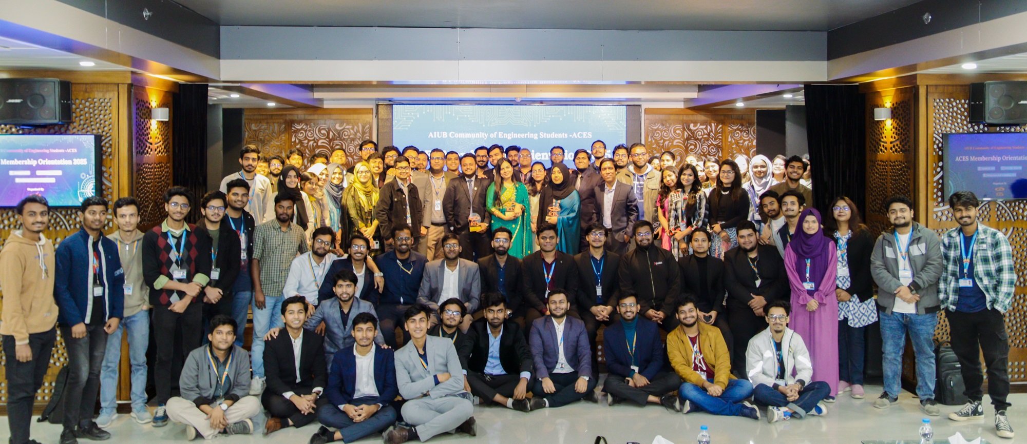 The AIUB Community of Engineering Students (ACES) successfully organized the ACES Membership Orientation 2025 on Wednesday, January 15, 2025, at the Multipurpose Hall, D-Building of American International University-Bangladesh (AIUB). The event welcomed 100 new members and volunteers, fostering a sense of belonging and enthusiasm within the ACES community. Membership kits were distributed to new members, officially integrating them into the organization.