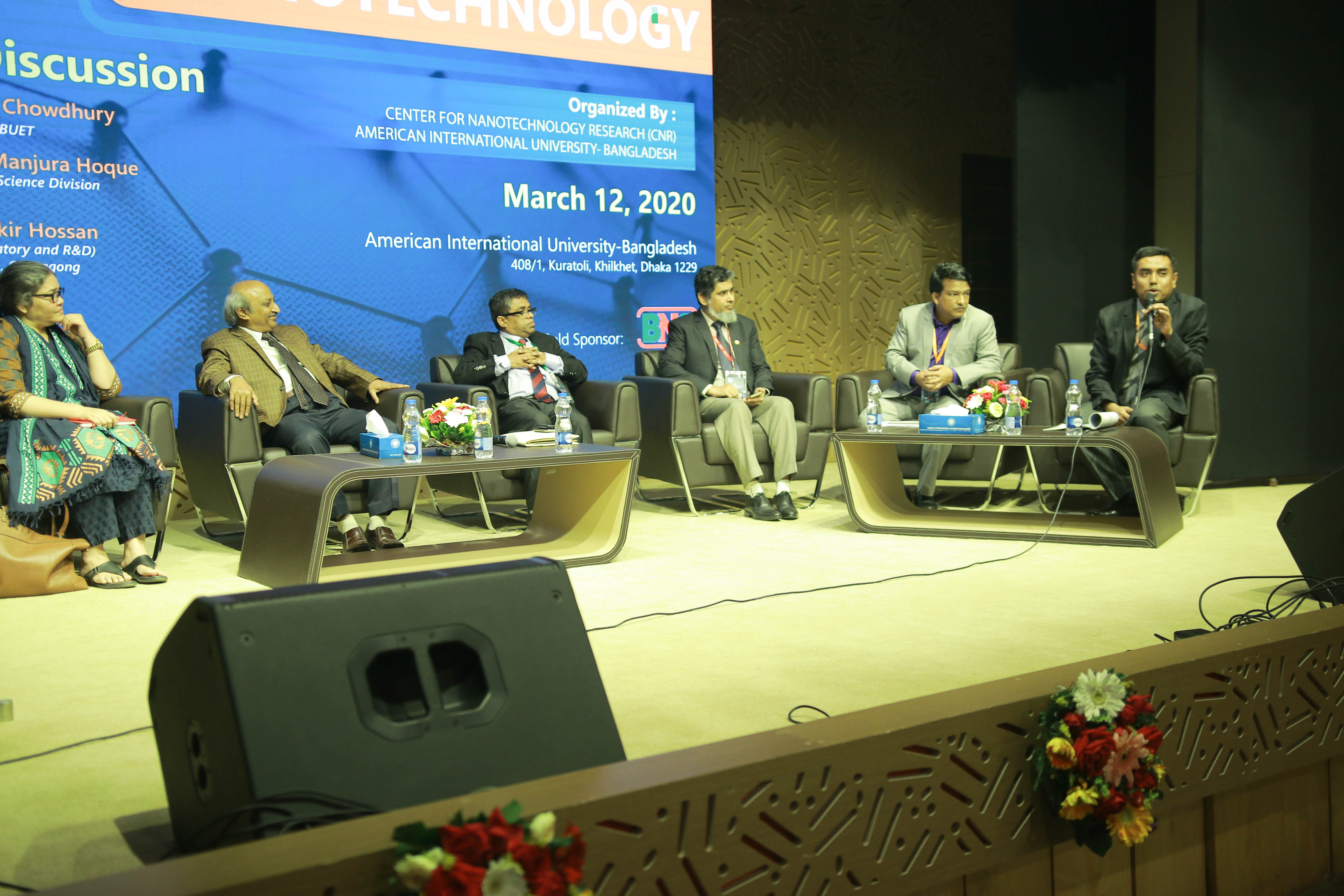 On 12th March 2020 a panel discussion on “Nanotechnology in Bangladesh: Challenges and Prospects” took place in American International University-Bangladesh (AIUB) as part of the International Symposium on Nanotechnology. This discussion commenced at 4 PM and focused on the sharing resources to address the challenges of nanotechnology in Bangladesh. The panel discussion was moderated by Prof. Dr. Md. Abdur Rahman (Associate Dean, Faculty of Engineering, AIUB). Prof. Dr. Al-Nakib Chowdhury (Department of Chemistry, BUET), Dr. Engr. Sheikh Manjura Hoque (Head and Chief Scientific Officer, Materials Science Division, Atomic Energy Centre) Dr. Mohammad Mahbub Rabbani (Department of Chemistry, AIUB), Dr. Khandaker Jakir Hossan (General Manager (Laboratory and R&D), Lub-rref(Bangladesh) Ltd.) and Dr. Jamal Uddin (Professor and Founding Director, Center for Nanotechnology, Department of Natural Sciences Coppin State University) joined as panel discussants. After the panel discussion Prof. Dr. Tafazzal Hossain (Pro Vice Chancellor, AIUB), Prof. Dr. Charles C. Villanueva (Vice President Academics and Dean, Faculty of Business Administration, AIUB), Prof. Dr. ABM Siddique Hossain (Dean, Faculty of Engineering, AIUB) and Prof. Dr. Tazul Islam (Dean, Faculty of Arts and Social Science, AIUB) handed over token of appreciation to each speakers, panel discussants and organizers.
