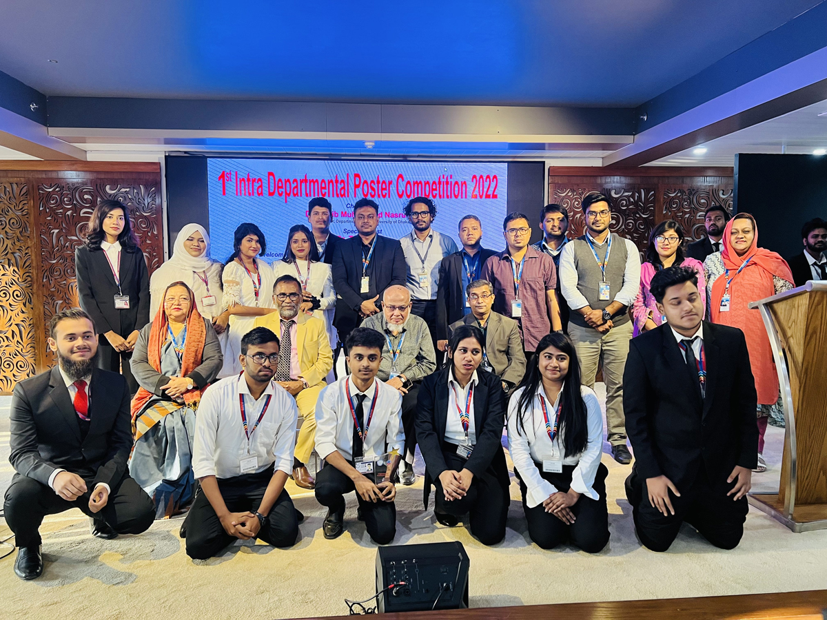 Prof. Dr. Nakib Mohammad Nasrullah, professor of law at the University of Dhaka was present as the ‘Chief Guest’ of the closing ceremony. Dr. Nakib highlighted the significance and intensity of extracurricular activities in addition to regular studies in his speech. Dr. Nakib also anticipated that more universities should host such events. The event also featured Prof. Dr. Tazul Islam, Dean of Faculty of Arts and Social Sciences (FASS), who inspired the students with a brief but heartfelt remark as the special guest of the ceremony. The welcoming address by Prof. Dr. Taslima Monsoor focused on the significance of the poster competition. Later, the honorable guests gave away crests to the winning teams.