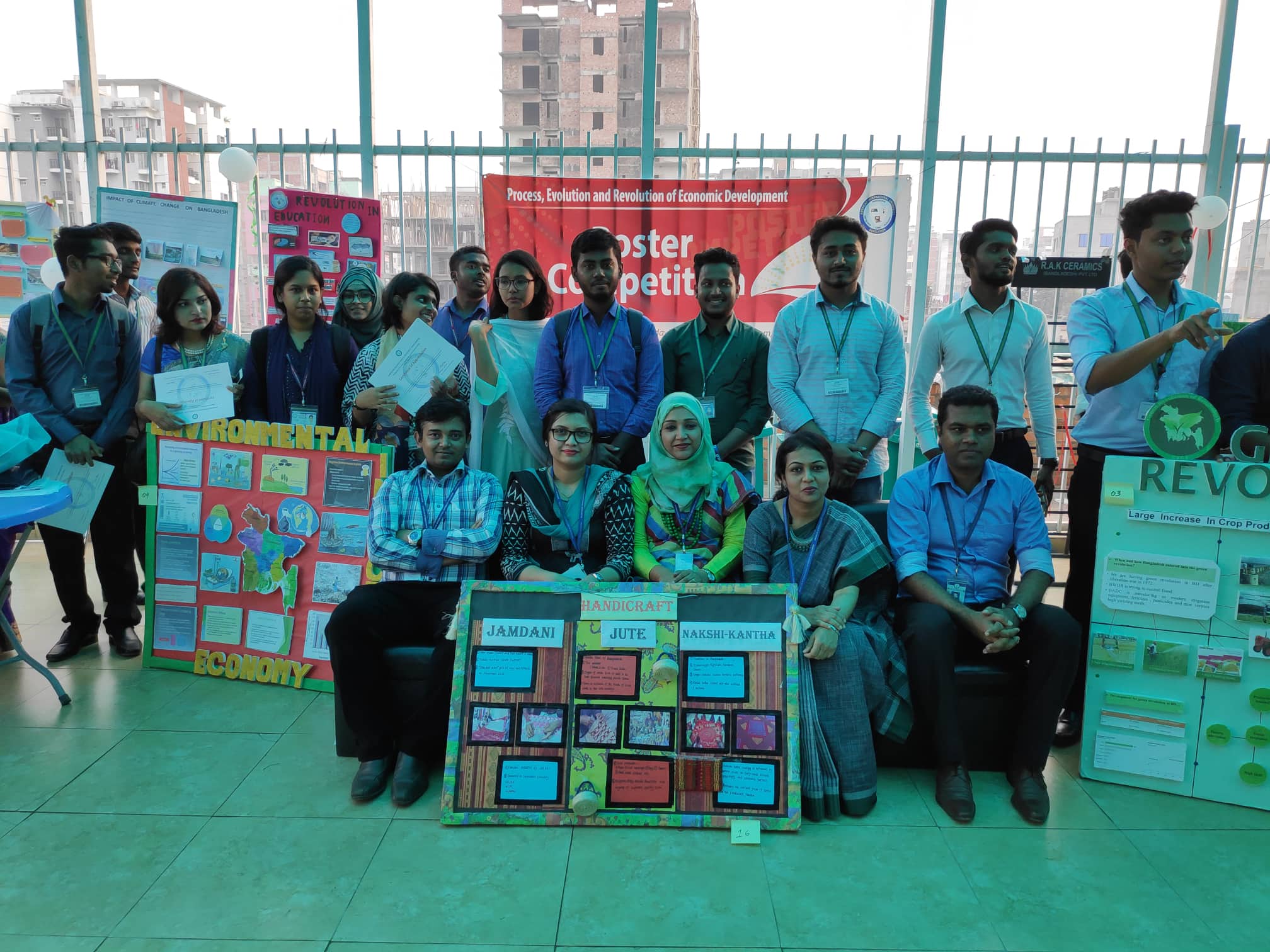 On November 15, 2018 a daylong poster competition was organized by Department of Economics at AIUB Permanent campus premises. The programme started at 11 am with the theme “Process, Evolution and Revolution of Economic Development” and in total 16 groups have participated with 5/6 students in each group.