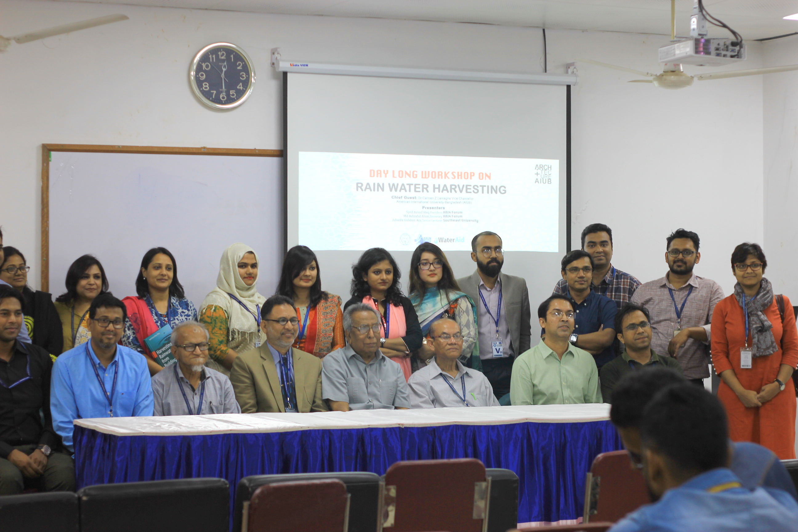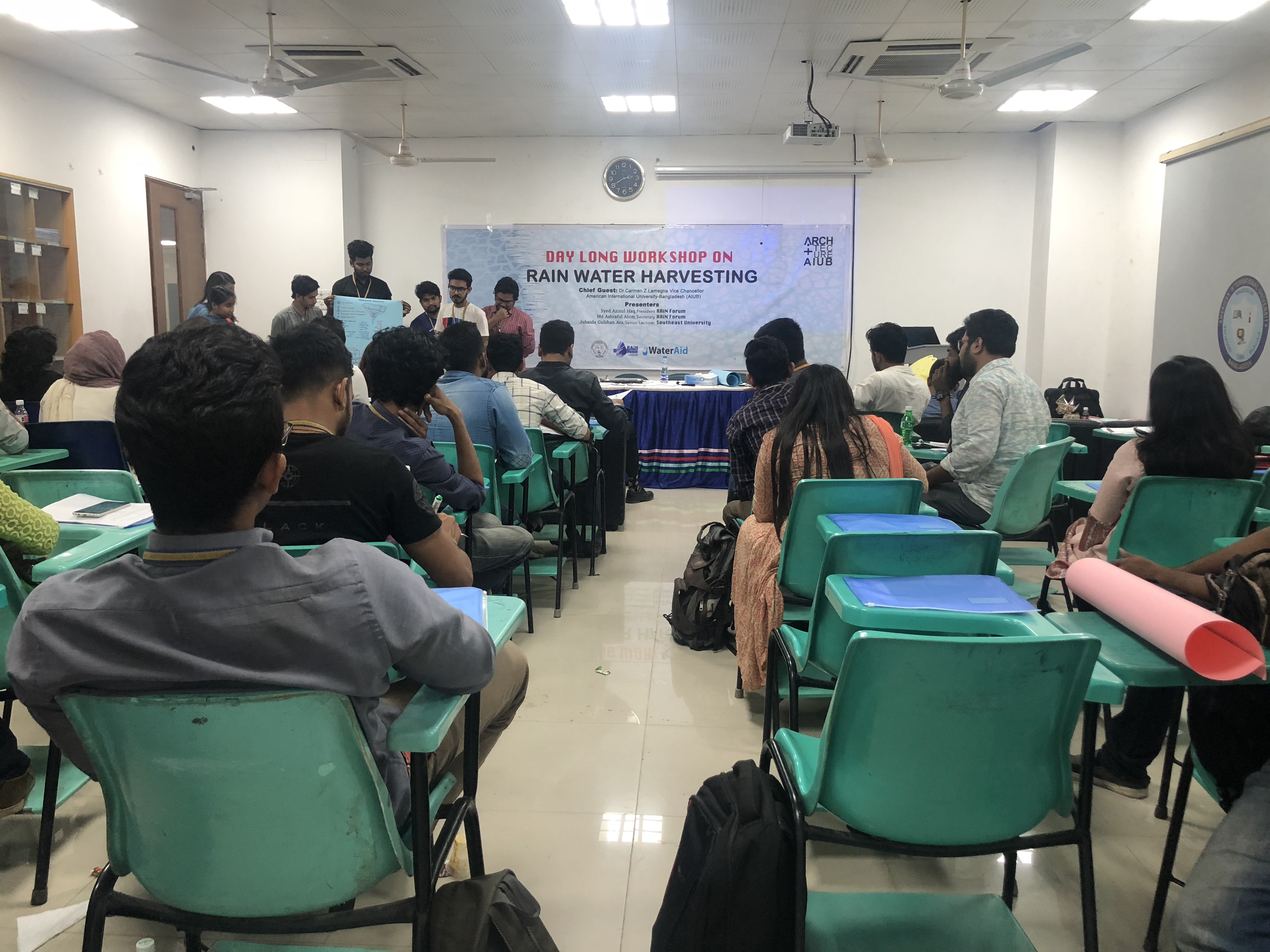 American International University-Bangladesh, Rain Forum and Water Aid jointly organized a day long workshop on Rainwater Harvesting on March 15, 2018 at AIUB permanent campus.The students of AIUB Architecture Department participated in the workshop where they learned about the different rainwater harvesting techniques which can be implemented in their future professional practice for efficient use of water resource.