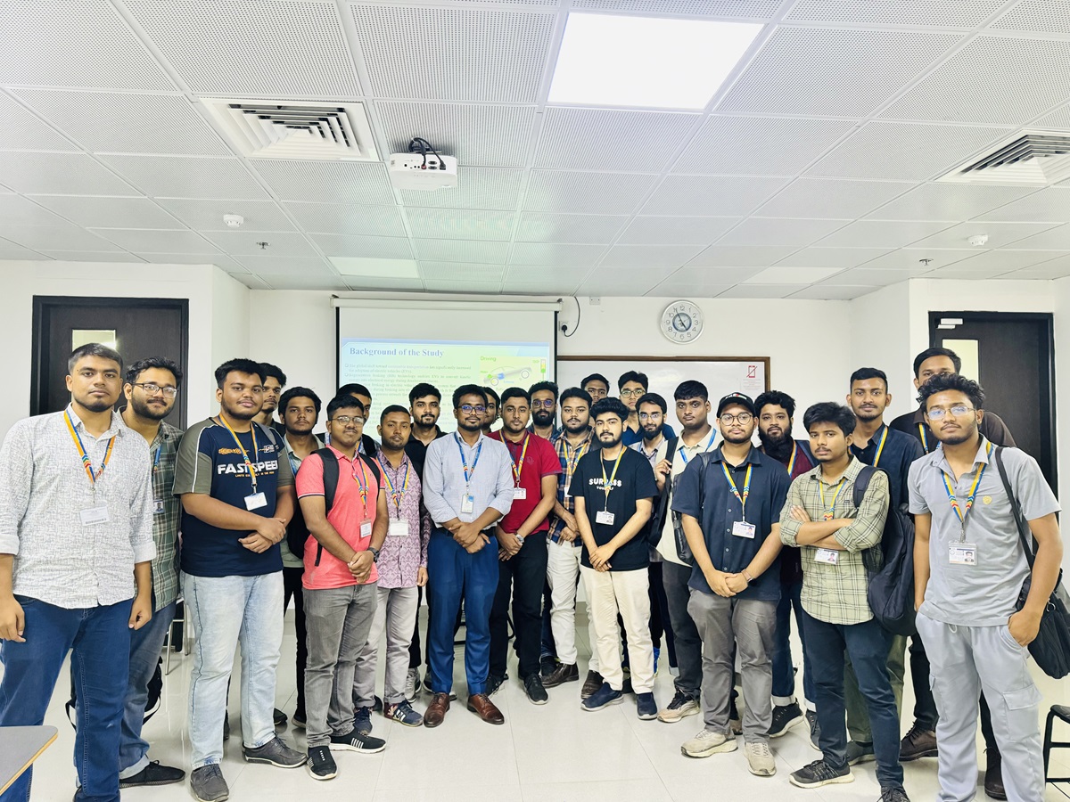 The session began with an overview of the growing relevance of electric vehicles (EVs) in the context of energy efficiency and environmental sustainability. Mr. Shufian elaborated on the principles of regenerative braking, where kinetic energy is converted into electrical energy during deceleration and stored using supercapacitors. He also discussed the role of Brushless DC (BLDC) motors and dynamic braking algorithms in achieving optimal energy recovery. Participants were introduced to system architecture, component specifications, control methodologies, and simulation-based performance analysis. The seminar emphasized key outcomes such as improved braking efficiency, faster energy recovery, and extended vehicle range. Through comparative analysis and cost-benefit evaluation, the session provided a comprehensive understanding of modern EV design considerations.