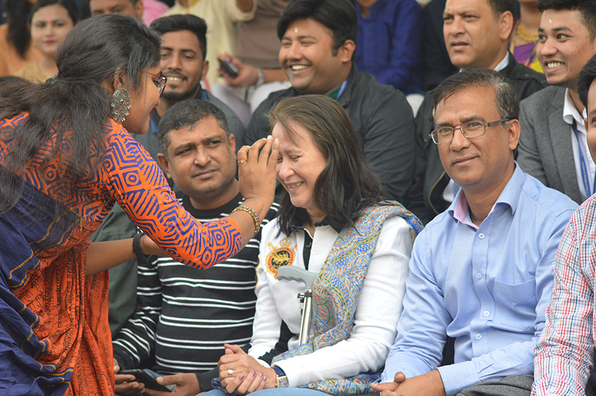 The program was inaugurated by Dr. Carmen Z. Lamagna, the Vice-Chancellor of AIUB, together with the institution’s community of Hindu students, faculty, and officials. The ‘Onjoli’ was then held by presenting flowers at the feet of the Goddess, in order to break the Fast observed by the Hindus on the auspicious occasion, which was then followed by the ‘Prasadam’, where the holy offerings were distributed amongst everyone. The occasion was brought to a close with a cultural program organized by the AIUB Performing Arts Club (APAC), whose musical performance ended the holy occasion on a beautiful note. The blessed program of the “Saraswati Puja Bani Archana” was attended by almost 1000 students and staff of the institution.