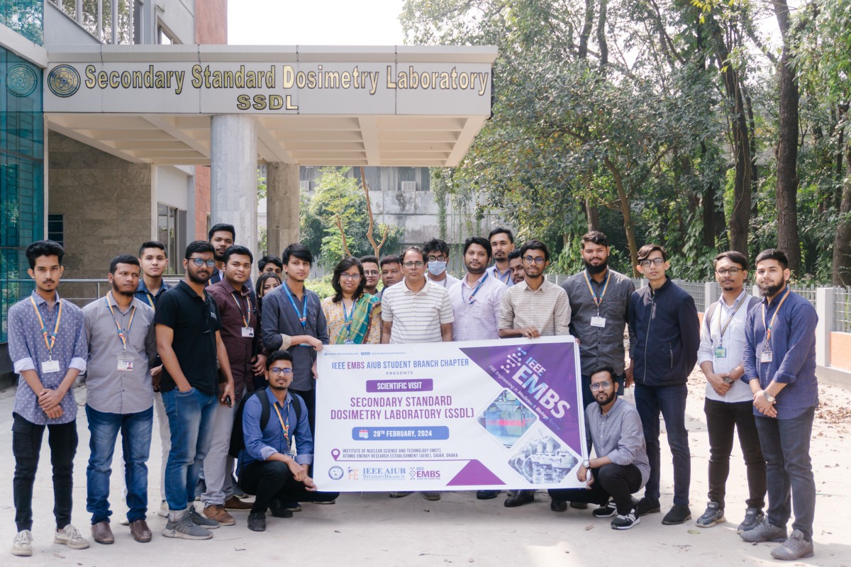 The IEEE Engineering in Medicine and Biology Society (EMBS) is a prominent international organization within the IEEE, which focuses on advancing the application of engineering and technology in medicine and biology. EMBS grants Chapter Project Initiative Funding awards to its chapters, student chapters, and clubs to initiate impactful initiatives. The IEEE Engineering in Medicine and Biology Society (EMBS) AIUB Student Branch Chapter was awarded this funding for taking the initiative to organize an impactful scientific visit. The funds were utilized to arrange the visit to the Secondary Standard Dosimetry Laboratory, which aimed to delve deeper into the field of biomedical engineering and create an impact.