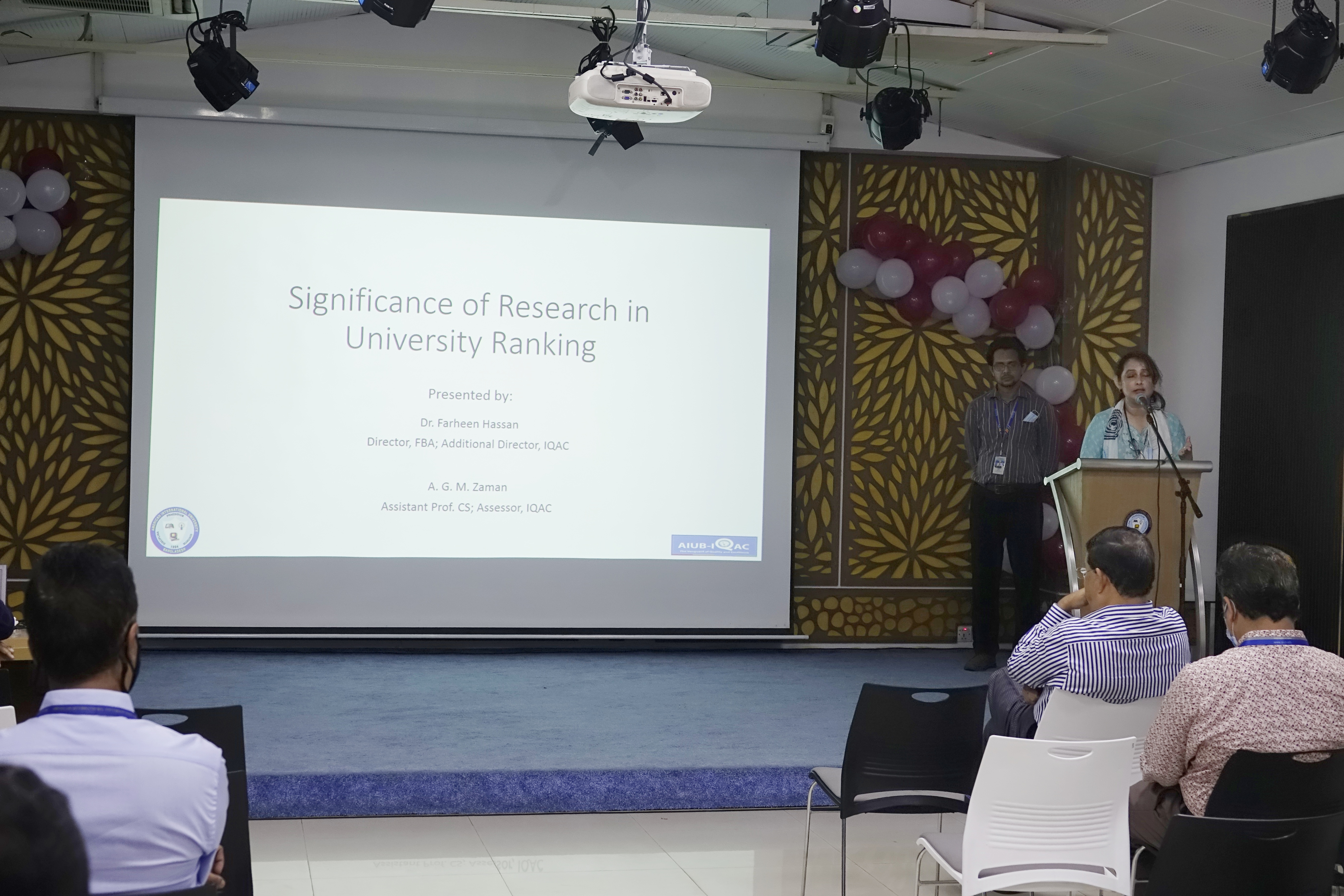FBA Research Cell and IQAC-AIUB jointly organized an in-house seminar on “Fostering Research Environment in FBA”, AIUB on 9th June 2022 from 12:30 to 02:30 pm at Media Studio, Annex 2, Level 2. All faculty members of FBA took part in the session. Dr. Farheen Hassan, Director, Undergraduate Program (BBA), FBA, AIUB presented the Key Note on “The Significance of Research and SDGs in Global Ranking of HEIs” and Mr. A. G. M. Zaman, Member, IQAC, AIUB also highlighted few issues among FBA Faculty members. Dr. Rezbin Nahar, Associate Professor, Department of Management & HRM, FBA, AIUB Highlights on AIUB Central Research Policy and FBA Research Policy to foster research environment. Dr. Md. Faruque Hossain, Professor and Environmental Scientist, Dept. of OSCM, FBA, and Dr. Mohammad Rafiqul Islam Talukdar, Professor, Department of Management & HRM, FBA shared their knowledge on Quality Research and Research Funding. Mr. Mehzabul Hoque Nahid, Assistant Professor, MIS, AIUB shared the publication opportunities and processes of submission to AJBE. At the end there was a Q&A session where most of the faculty members took part and gave their opinions on research policy. Finally, Prof. Dr. Nisar Ahmed, Director, Graduate Program, FBA, thanked IQAC-AIUB and FBA Research Cell for organizing such enriching and knowledge sharing session. And hoped it will enhance quality research work in future. Administrative support was provided by Mr. Zahidul Karim Adib, Officer of the FBA's Dean Office and Mr. Md Mehedi Hasan Emon TA from the FBA Program, under the direct guidance and supervision of Dr. Farheen Hassan, Director, Undergraduate Program (BBA), FBA.