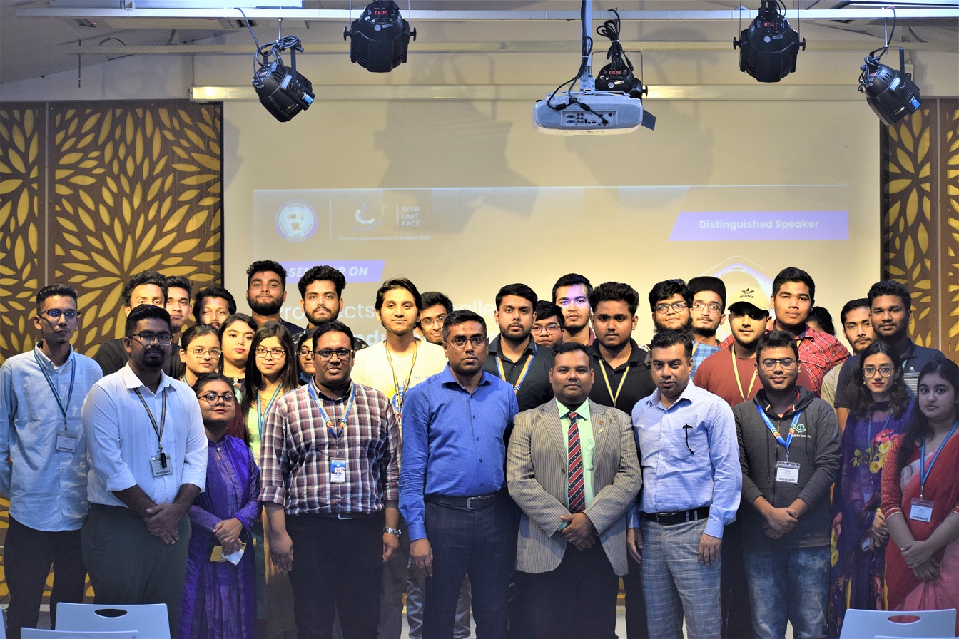 After that, the advisor of ESAB AIUB Unit Face, Prof. Dr. Md. Abdur Rahman (Associate Dean, Faculty of Engineering, AIUB), gave the closing remarks and shared his valuable experience and knowledge on 4IR and how AIUB is contributing and preparing their students to face the biggest challenges and opportunities. Later, he handed over the token of appreciation and certificates to the speaker. He also presented a token of appreciation to honorable guest Mohammad Imran Hossain (Chairman of the Mars Group and Former DGM and HOD of Construction, Energypac Engineering Ltd.).