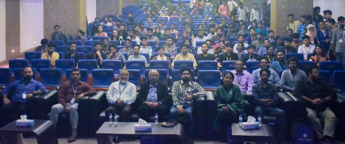 The seminar primarily focused on the global skills pipeline for VLSI and microelectronics, highlighting career opportunities in digital and analog design, verification, and layout, while stressing the importance of a solid foundation in device physics, circuit theory, and HDL/EDA tools. The program starts with the introductory remarks by Dr. Shahriyar Masud Rizvi (Deputy Director, Center for VLSI and Embedded Systems (CVES), AIUB). Then, Mr. Abdul Mubin Ahmed highlighted industry expectations and collaboration opportunities; Mr. Md. Muzammel Hossain underscored professional branding, networking, and interview readiness for international roles; and Ms. Moon Sadia Dipthee shared insights from analog layout practice, encouraging inclusiveness and sustained problem-solving habits. Through practical examples, the speakers illustrated how semiconductor innovation underpins modern computing and communication, and how students can map coursework, projects, and internships to real-world roles.