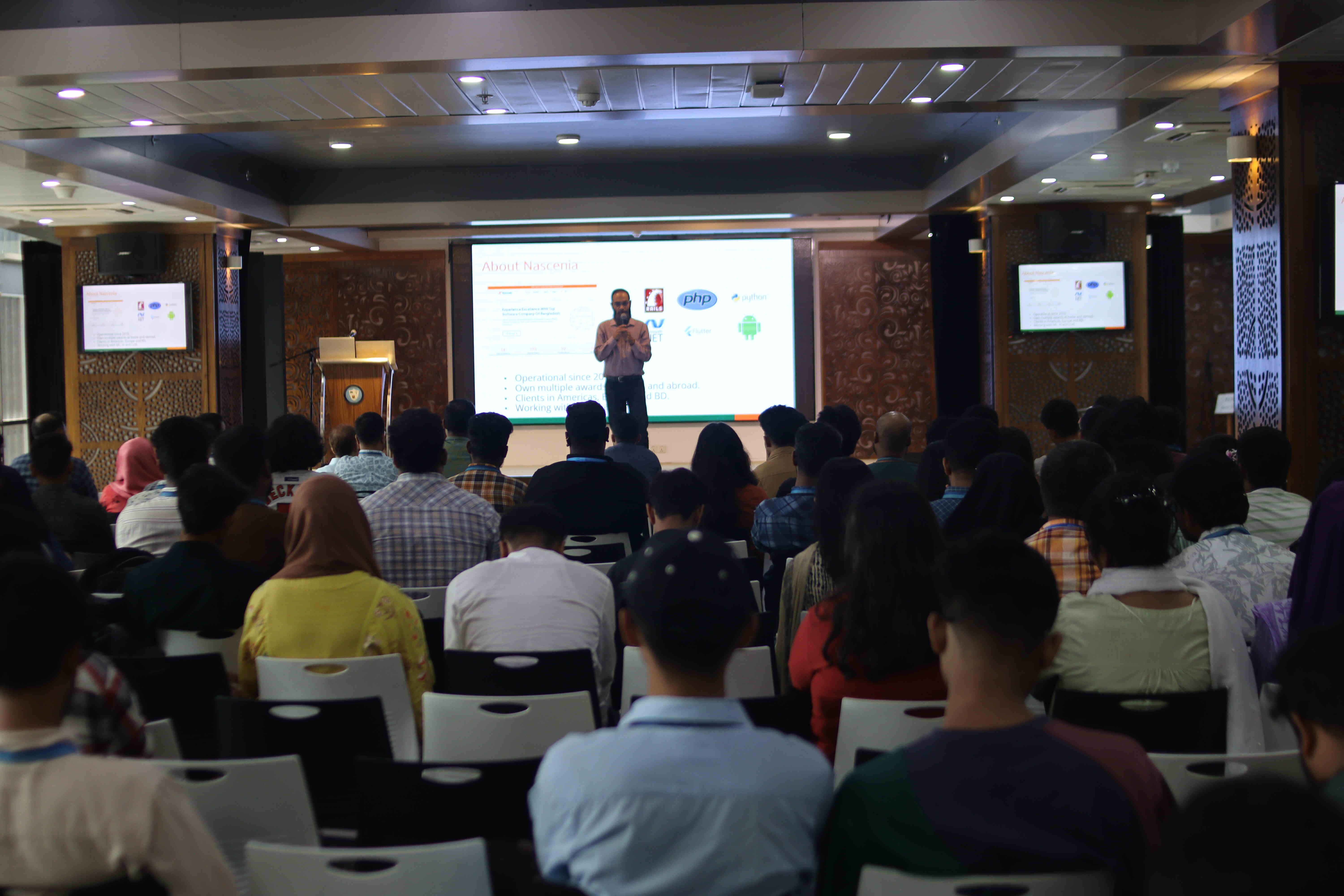 The seminar began with an introductory speech by Mr. Sheikh Shaer Hassan, who shared his professional journey and experience in the tech industry. He was then joined by Mr. S M Nahid Hasan, who took the lead in delivering a comprehensive presentation alongside Mr. Shaer.