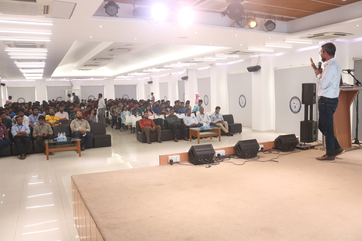 Following Rahman's discourse, the floor was yielded to Dr. Debajyoti Karmaker, an accomplished Associate Professor specializing in Computer Science at AIUB. Dr. Karmaker's exposé revolved around the integration of cutting-edge technological paradigms – including computer vision, feature extraction, deep learning, and neural networks – within the ambit of network and cybersecurity. Substantiating his discourse with illustrative graphical renderings, Dr. Karmaker lucidly underscored the transformative potential of these advancements in bolstering the bulwarks of network and cybersecurity. Concluding his address, Dr. Karmaker expressed his gratitude to the assembly.