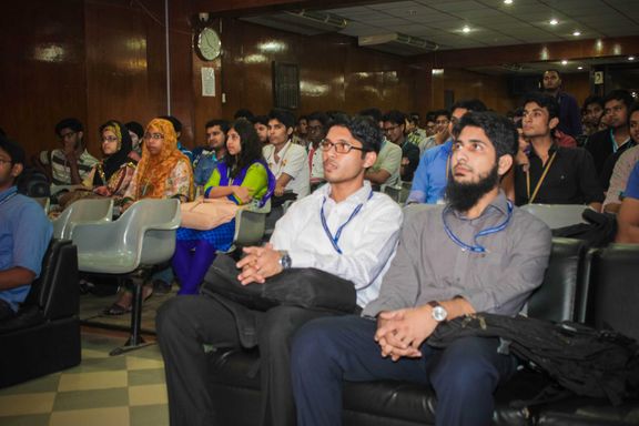 Alamgir Jalil Akik, a junior executive member of Ubuntu Bangladesh and a student of the Dept. of EEE, AIUB talked on the necessity of using an open source based OS like Linux for future Engineers. He also talked about the application of open source Operating systems in various electrical operation fields like smart grid management systems or giant automation industries.Another executive member of Ubuntu BD, Russell John, who is also the first member of Ubuntu-Bangladesh team, gave a detailed discussion on Linux. In his speech he explained dealing with Linux and its booting process, audience communication, system running process, and the virus-protective benefits of Linux.
