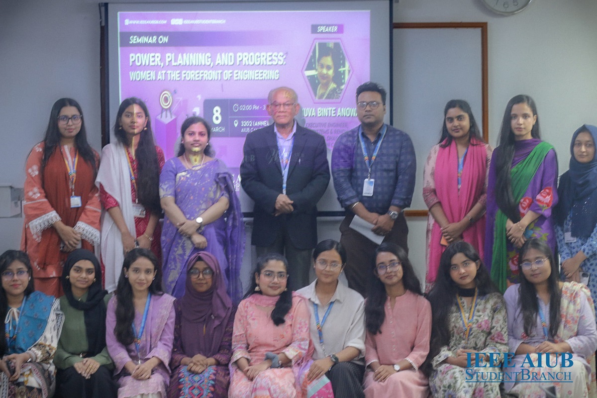On Sunday, March 8, 2026, the IEEE AIUB Student Branch in collaboration with the IEEE AIUB Student Branch WIE Affinity Group successfully organized a seminar titled “Power, Planning and Progress: Women at the Forefront of Engineering.” The seminar aimed to highlight the contributions and leadership of women in engineering and to inspire the students to thrive for excellence in the engineering field.