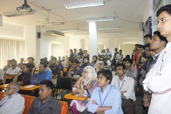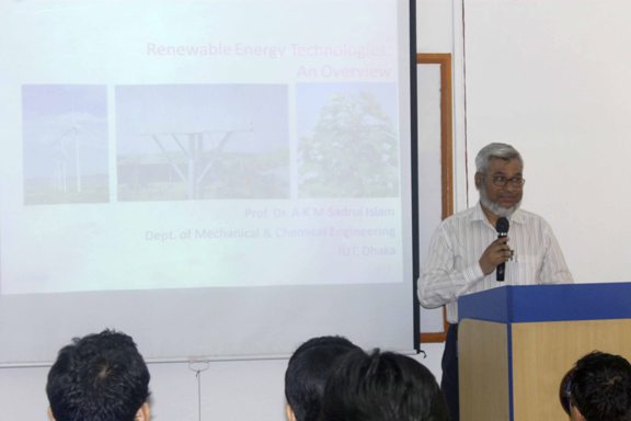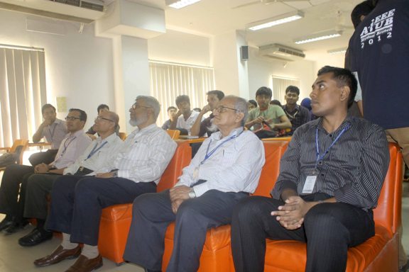 A seminar entitled “Renewable Energy Technology: An Overview”, was organized by IEEE AIUB Student Branch. The seminar was hosted by Mr. Sayedus Salehin, lecturer, EEE Department. The seminar began with a speech by Prof. Dr. A.B.M. Siddique Hossain, Dean, Faculty of Engineering and Prof. M. A. Quaiyum, Registrar, giving an excellent introduction to the seminar and an overview of the scene. The guest speaker of the seminar was Prof. Dr. AKM Sadrul Islam, Professor, Department of Mechanical and Chemical Engineering (MCE), and the Head of Civil and Environmental Engineering (CEE) Department in Islamic University of Technology (IUT). The speaker expressed his views on the prospects of renewable energy in the light of presentation that was made and his experience in the field of energy. He stressed the need to promote the renewable energy sector for energy security and sustainable development. He also emphasized how we need innovative technology like Hydropower, Tidal Power and Geothermal Energy to solve our long-term energy problems. He introduced of the Global Warming – both its causes and effects and the long-term objective of reducing global green-house gas emissions. Amongst many technologies in these initiatives, the speaker focused his message on Photovoltaics, Biomass and Biogas. He accentuated how new types of photovoltaic materials and technologies have the potential to reduce the cost of photovoltaic panels. He also talked about Biomass and Biogas generation in Bangladesh and also emphasized how sustainability was the key consideration in the biomass energy development. He used his presentation to describe the present scenario of energy consumption in Bangladesh and its future prospects. One particular thing that emerged from the seminar was the need to highlight the inconsistencies in funding between the established energy producing sectors and the new renewable energies. During these sessions participants could discuss issues based on some questions and share thoughts with each other and the speaker. Faculty members from EEE department Mr. Abdur Rahman (Asst. Prof. & Head of Undergraduate Program), Mr. Tareq Aziz (Asst. Prof. Faculty of Engineering), Mr. Ahmed Mortuza Saleque (Faculty of Engineering), Mr. M.S. Muhit (Faculty of Engineering), Mr. Md. Saniat Rahman Zishan (Faculty of Engineering), Mr. S. M. Ferdous (Faculty of Engineering), Mr. Taskin Jamal (Faculty of Engineering), Mr. Rethwan Faiz (Faculty of Engineering), Md. Mamunur Rashid (Faculty of Engineering), Humaira Salmin (Faculty of Engineering) were present at the seminar.