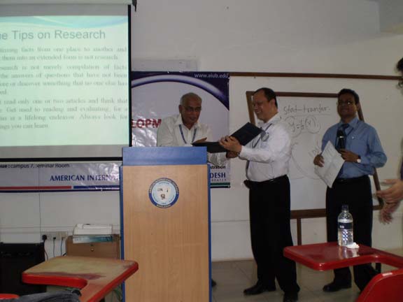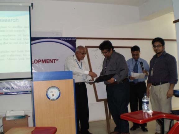 The program was opened with a welcome message from the Pro Vice Chancellor, Prof. Dr. Anwar Hossain. He underscored the importance of research in various aspects of the academic and business arenas. The promotion in academic rank is giving significant weight to the total evaluation of the faculty. This is the reason that every faculty must strive to conduct at least 1 research during the academic year. His message was followed by a presentation and discussion of Prof. Dr. Charles C. Villanueva, Dean Faculty of Business Administration and the Senior Asso. Vice President of CRPD on the Role of Research in Development , AIUB’s Research Agenda and Research Priorities by Faculty . There are 7 broad areas identified as the focal of the agenda that would guide the faculty in the conduct of research in the next 10 years: Quality Assurance, Business Promotions, Strengthening Partnerships, Internationalization, Curriculum Development and Enrichment, CSR and Participation in the Digitalization of Bangladesh. The topic on Research Process was divided into subtopics: Social Science and Business with Prof. Dr. Neaz Ahmed and Dr. Mamun Habib as discussants, respectively. The Research Methodology topic was divided into Statistical Tools discussed by Dr. Nisar Ahmed while the Data Analysis was discussed by Mr. Shahnawaz Rafi. The discussants highlight some illustrations showing the application of the SPSS in data processing and interpretation, and the current statistical models in analyzing data to make it more meaningful and useful.