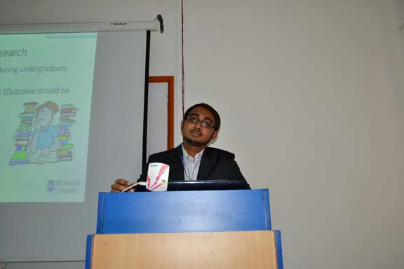 A seminar was organized by IEEE AIUB Student branch on last Wednesday, 8 February 2012 held in the Campus-2 (room# 266). The seminar was presented by Mr.Emran Md. Amin; a PhD student from MonashUniversity, Melbourne, Victoria, Australia.