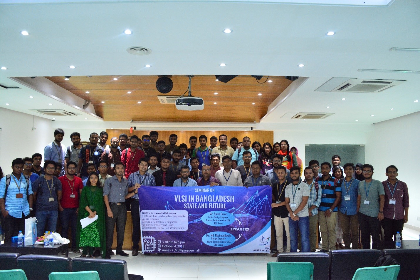 Engineering Students Association of Bangladesh (ESAB) AIUB Unit Face has successfully organized a seminar on Very-large-scale integration (VLSI), titled as “Seminar on VLSI in Bangladesh- State and Future”, at annex 7, AIUB Campus, on October 4th, 2018. The program was inaugurated by expressing gratitude towards our national anthem. Afterwards, a brief promo video of ESAB was shown to the audience to give a demonstration on the association Engineering Students Association of Bangladesh (ESAB).