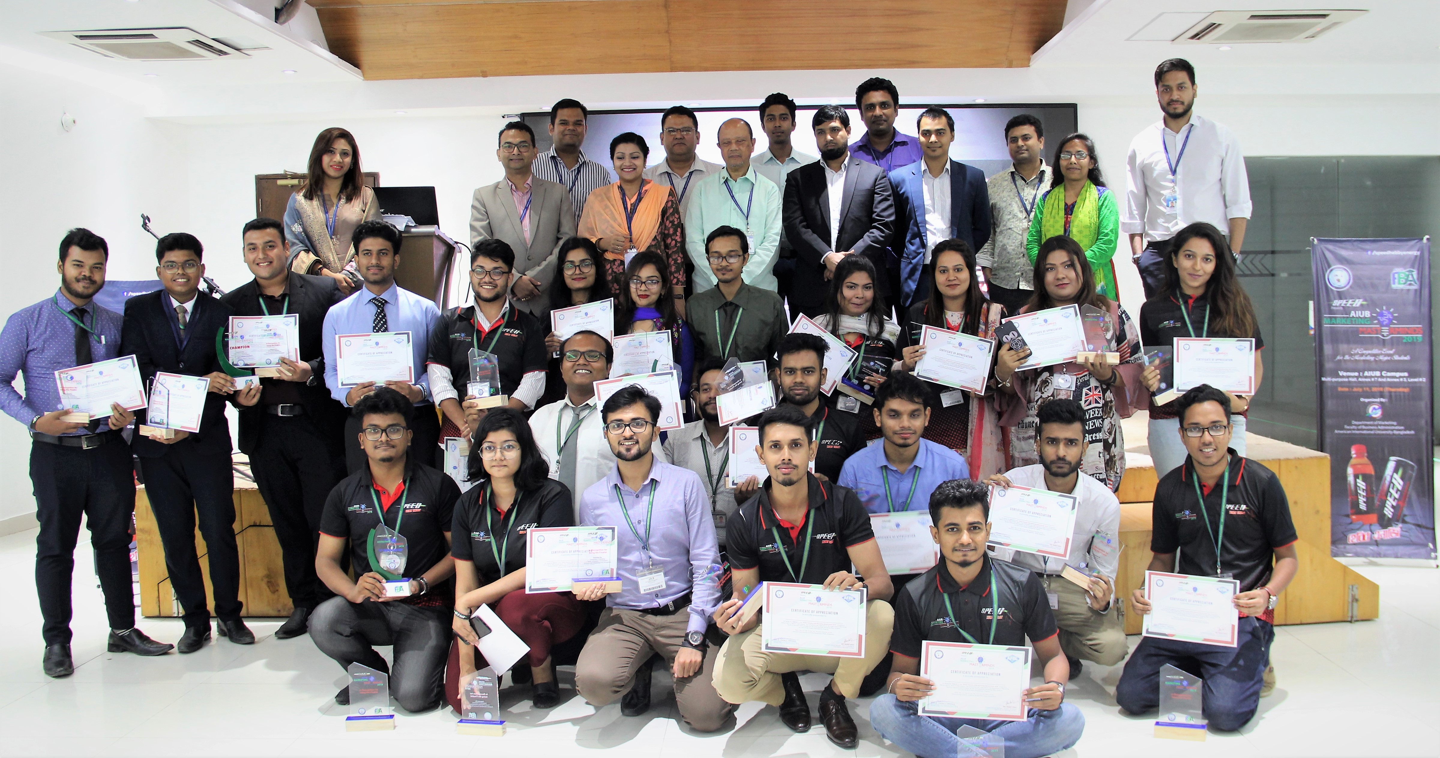 At the closing event, Prof. Dr. Charles C. Villanueva, Mr. Md. Maidul Islam, Assistant General Manager, Brand & Marketing, AFBL, Mr. Muntasir Mamun, Assistant Brand Manager, AFBL (Alumnus of Department of Marketing, FBA, AIUB), officials of AFBL along with the Faculty members from the Department of Marketing and other Departments were present. They presented trophies, crests and certificates of recognition to the Champions, Runner Ups, and all the finalists.