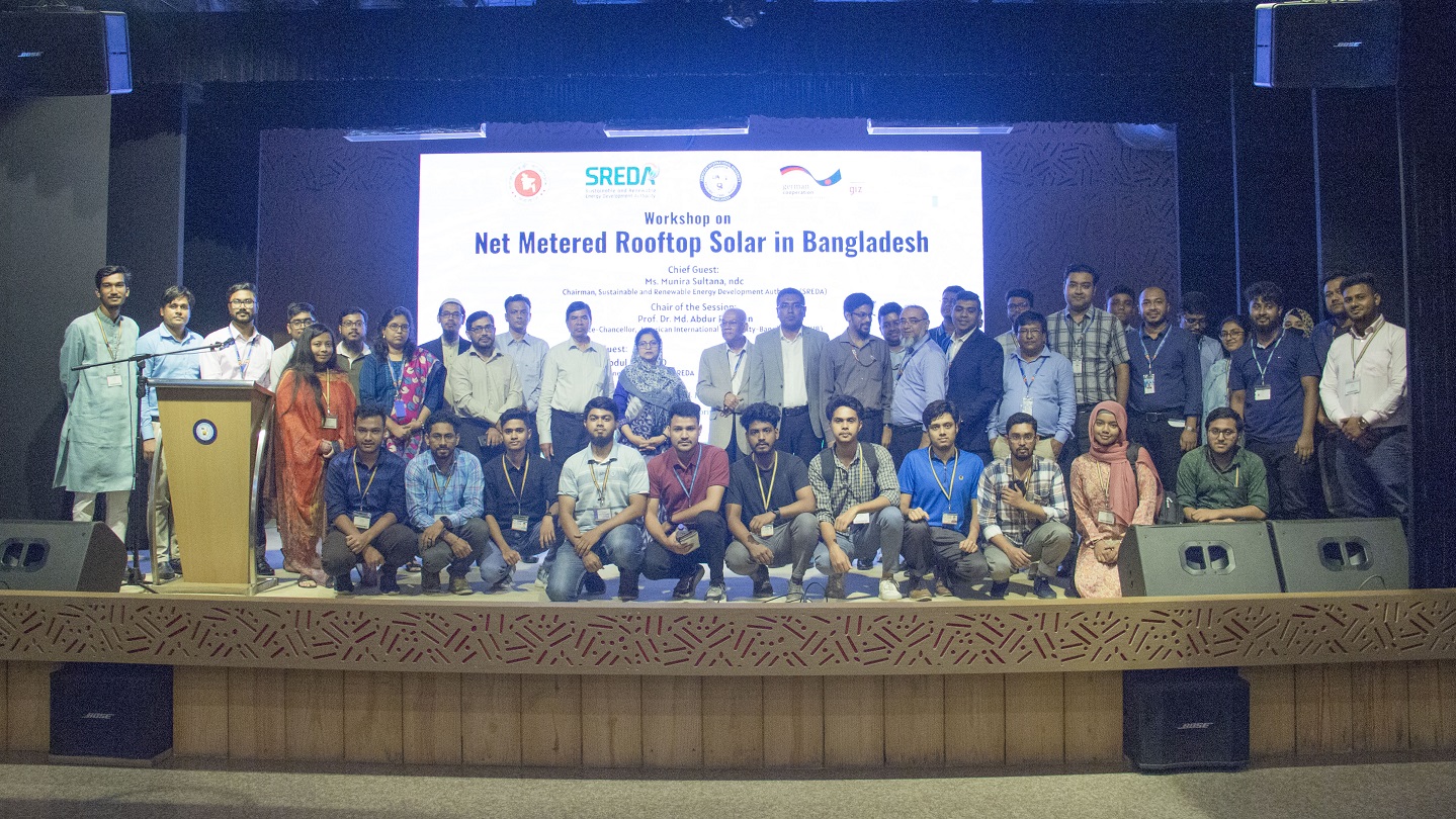 On June 5, 2023, the Sustainable and Renewable Energy Development Authority (SREDA) organized a workshop titled "Net Metered Rooftop Solar in Bangladesh" at American International University-Bangladesh (AIUB). The program started at 10:30 AM with 230 participants at the Auditorium, Building D, AIUB. The purpose of the workshop was to inform the students about the benefits, implementation, and regulatory aspects of net-metered rooftop solar systems in Bangladesh.