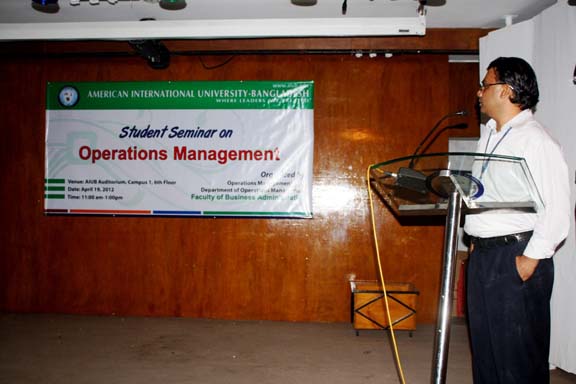 In modern era Operations Management has gained a significant place in the business world. Organizations are focusing on proper management of their resources to ensure maximum productivity and efficiency level. Government has also realized the importance of operations management and declared 2nd October as the “Productivity Day” in Bangladesh. To introduce the basics of operations management to our students a student seminar on “Operations Management” was organized by the Operations Management Club under the supervision of Mr. Zobair Shibli and Mr. Ashfaque A. Mohib. The seminar was held on April 19, 2012 at the auditorium of campus 1.