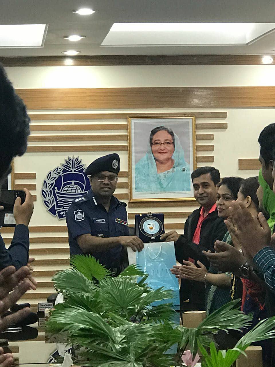 In reply to a question, Additional DIG, Mr. Mahfuzur Rahman, discussed about the process and opportunity to work in Bangladesh Police and gave example of some alumni of AIUB who joined Bangladesh Police. Mr. Mahfuzur Rahman also influenced the students to serve the country by being a good citizen. The students had the opportunity to visit the residence and office of SP of Manikgang district, and Police lines where they observed the daily life of Police personnel.