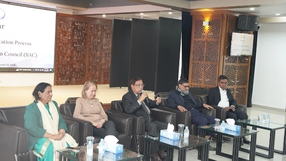On January 21, 2024, AIUB hosted the “Initial Preparation Seminar” conducted by dignitaries from the Bangladesh Accreditation Council (BAC), including its Chairman, Professor Dr. Mesbahuddin Ahmed. Bangladesh Accreditation Council (BAC) is the sole government-approved and autonomous statutory body responsible for the accreditation of higher education institutions and their academic programs in Bangladesh. This event signifies AIUB's direct involvement in the rollout of national SDG policy for education, as five of its programs had submitted expressions of interest for accreditation. The seminar served as a crucial feedback loop, where BAC officials exchanged views on the accreditation procedure and the Bangladesh National Qualifications Framework (BNQF) with AIUB's quality assurance committees. This dialogue allows AIUB to provide direct input into the process, identifying problems and challenges in its practical application, which in turn helps the BAC refine its policy development for the entire nation, supporting SDG 4 (Quality Education) and SDG 17 (Partnerships).
