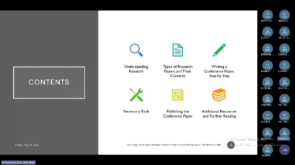 This beginner workshop supplied slide decks, sample templates and a reference list of freely available research tools (Google Scholar, ResearchGate, Elicit) and published them for public access. The hands-on session and follow-up materials enable self-directed learners to practise academic writing without formal enrolment, and the department indicated future recorded sessions so external participants can use them as ongoing resources. Participants received attendance certificates and guidance on free online investigation tools.