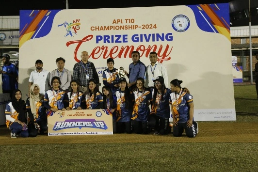 On a lively Saturday, February 24, 2024, the AIUB Premier League (APL) T-10 Cricket Championship kicked off at AIUB's campus. The opening ceremony was graced by the presence of Professor Dr. Abdur Rahman, Pro Vice Chancellor of AIUB, Dr. Manzur H. Khan, Proctor of AIUB, who officiated the commencement of the event. They were joined by faculty members, and administrative officials of AIUB. With 24 departmental teams vying for victory, including national cricket stars like Sabbir Rahman, Shariful Islam, Joyraz Sheik Emon, Munim Shahriar and Arafat Sunny, the tournament promised thrilling action. The final phase of the program began with the performances of AIUB Performing Arts Club (APAC). In the final, the EEE Blasters clinched the championship by defeating the BBA Jaguars in a gripping match on Sunday, March 3, 2024. Meanwhile, Majestic Masters secured third place, and Media Giants were honored for their fair play. In a special highlight, the Black Avengers triumphed over AIUB Sixers in a dedicated women's match, with the notable participation of national football stars like Krishna Rani Sarker and Rupa Akter. The tournament's excitement was broadcast live on AIUB's official Facebook page (https://www.facebook. com/aiub.edu).