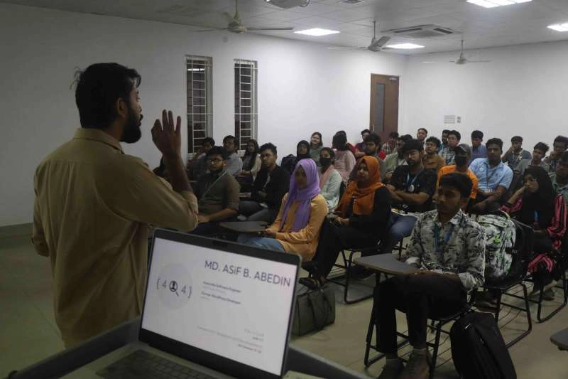 On June 10th, 2024, AIUB Computer Club organized a workshop titled "Career Pathways: Industry Insights for Aspiring Software Engineers." The workshop aimed to shed light on career pathways for future software engineers and provide guidance on excelling in the industry. Asif Bin Abedin, an Associate Software Engineer at Selise Digital Platform, was the featured speaker.