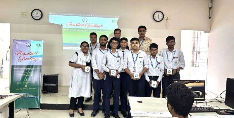 The Department of Marketing at AIUB organized the FBA Academic Outreach Program on May 9, 2024, at Dhaka Imperial College to enhance students’ academic and career skills. Through interactive sessions, career guidance, and business quizzes, students gained insights into higher studies, entrepreneurship, and professional development. This initiative reflects AIUB’s social responsibility and outreach and contributes to SDGs 4, 5, 8, 10, and 17 by promoting quality education, gender equality, decent work, reduced inequalities, and partnerships for sustainable growth.