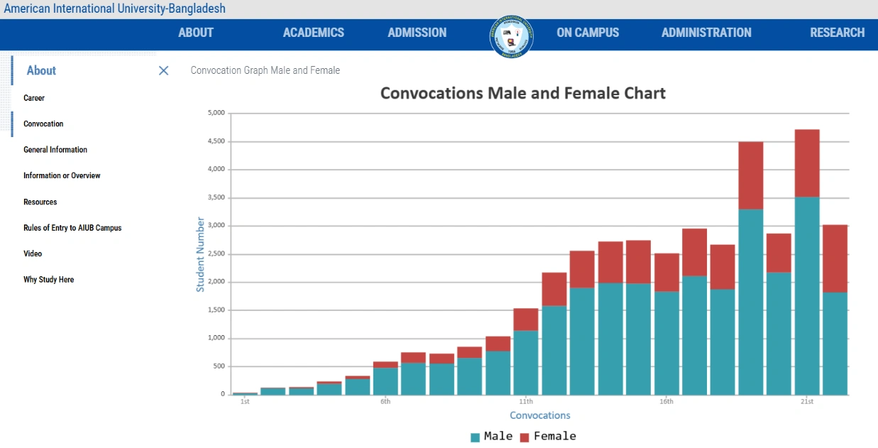 AIUB keeps track of how likely women are to graduate compared to men. Since the university holds a convocation every semester, it records and reports how many female students graduate each time. This helps AIUB see if there are any differences between men’s and women’s graduation rates and take steps to reduce any gaps, showing its commitment to fairness and supporting women’s success.