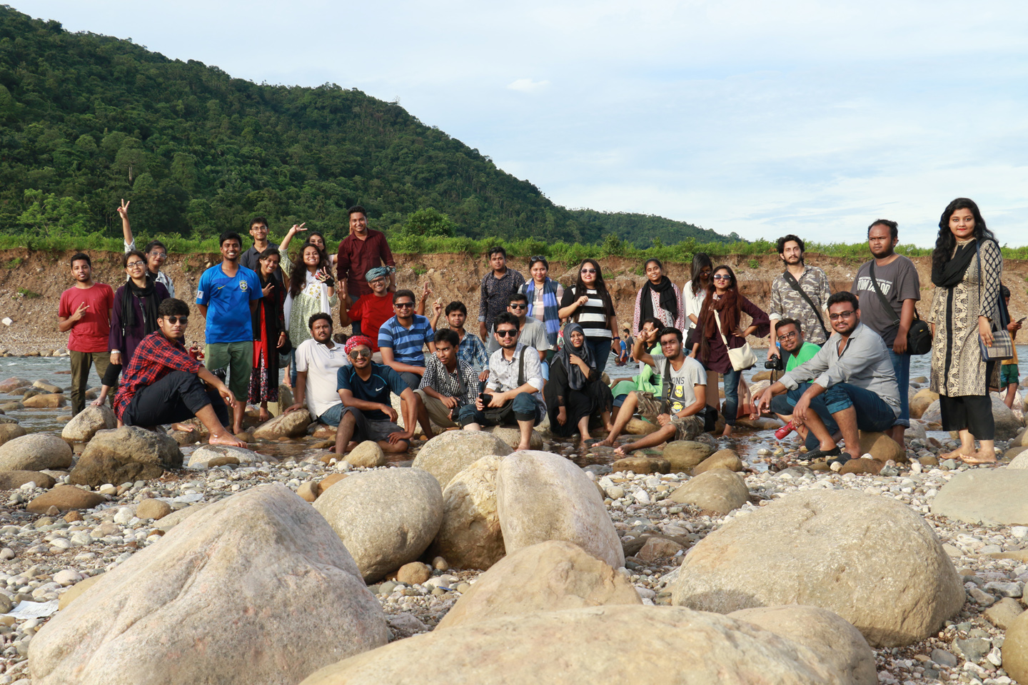 Bisanakandi is a Stunning landscape at Bangladesh Meghalaya border . This is where many layers of the Khasi Mountain meet at a single point from both sides and river flows from the hilly high fall. Adding to its charm the dark clouds are hugging the mountain in this rainy season. The absence of such nuisance makes the rainy season a perfect time to visit the beautiful Bisanakandi that coalesces the charms of high mountains, sinuous rivers, graceful falls and dancing clouds. Students also enjoyed the beautiful sunset at Bichanakandi. The color of the sky made another charming impact to this tour.