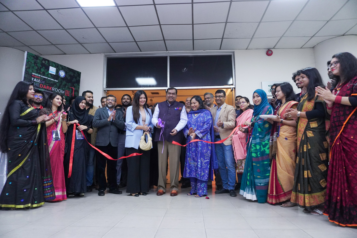 On Friday, January 26, 2024, Mr. Ishtiaque Abedin, Founder Member and Chairman, Board of Trustees, AIUB Inaugurated the most anticipated flagship exhibition, "TALE OF THE DARKROOM SEASON-III” at the Gallery 7, National Art Gallery, Shilpakala Academy, Dhaka. Ms. Nadia Anwar, Founder Member and Vice Chairman, Board of Trustees, and Ms. Shanian Mahia Abedin, Member, Board of Trustees, AIUB were also present during the inauguration along with the Registrar, Proctor, Faculty Members, Officials and Students of AIUB.