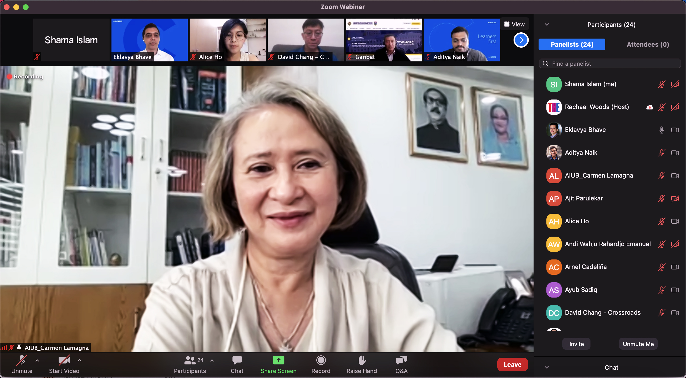 The Opening Panel Discussion was themed on ‘Making the most of Asia-Pacific's Opportunities with Skills Education and Industry Collaboration’. Moderated by Mr. Alistair Lawrence, the Special Projects Editor at THE, the panel comprised of Mr. Raghav Gupta, the Managing Director (India & APAC) at Coursera, Mr. Farkhod Ibragimov, the Founder & CEO of IT Park, Uzbekistan, Ms. Joyce Teo, the Vice President of Global Affairs at the Universiti Brunei Darussalam, and Dr. Carmen Z. Lamagna, the Vice Chancellor of the American International University – Bangladesh (AIUB). The discussion highlighted the need for academic and industry linkages to bridge the gap between the qualifications of graduates and the skills required for employees. This was followed by 2 breakout sessions centered on ‘Improving Learning Outcomes: New Strategies to Increase Employability in APAC and India’, where Dr. Lamagna also presented on AIUB’s approach to the academia-industry collaboration, that emphasized on the importance and scope of strategic partnerships moving forward and the necessity of embracing the adaptability to change in heading towards the future. The program was brought to a close with the final panel discussion focusing on ‘The Future of International Collaboration in Asia-Pacific’s Higher Education’.