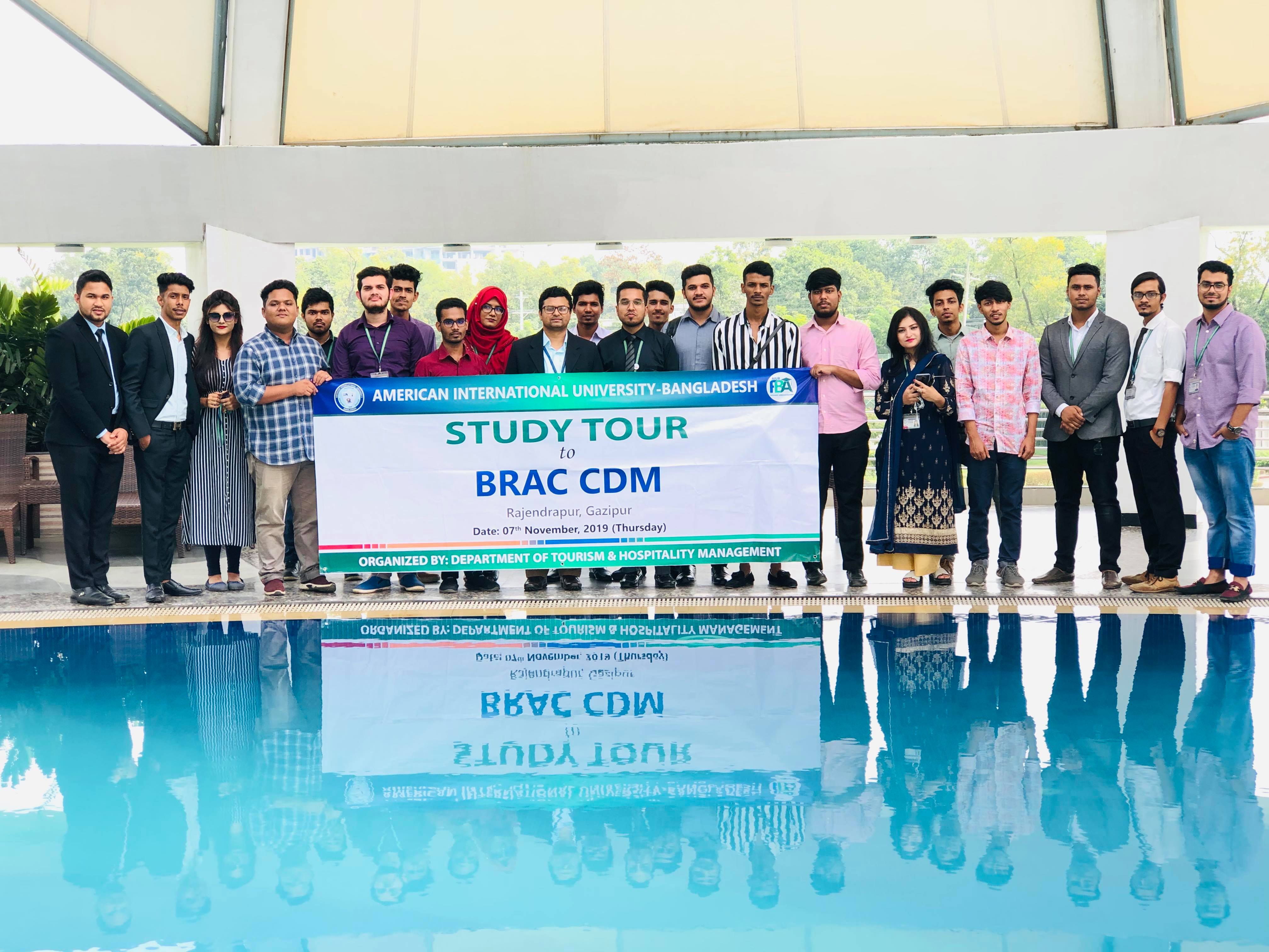On 07th of November, 2019 Tourism & Hospitality Management major students had a memorable study tour to BRAC CDM, one of the renowned resorts in Rajendrapur, Gazipur. This tour provides students with a fascinating perception into the hospitality industry. It also gave them an opportunity to engage with experienced hospitality professionals and broaden their knowledge on many aspects of hospitality business practices i.e. front office, housekeeping, F&B, laundry and come to appreciate the complexities and challenges of the industry. This study tour was led and conducted by AIUB faculty member Lecturer Mr. Mahmudul Hasan.