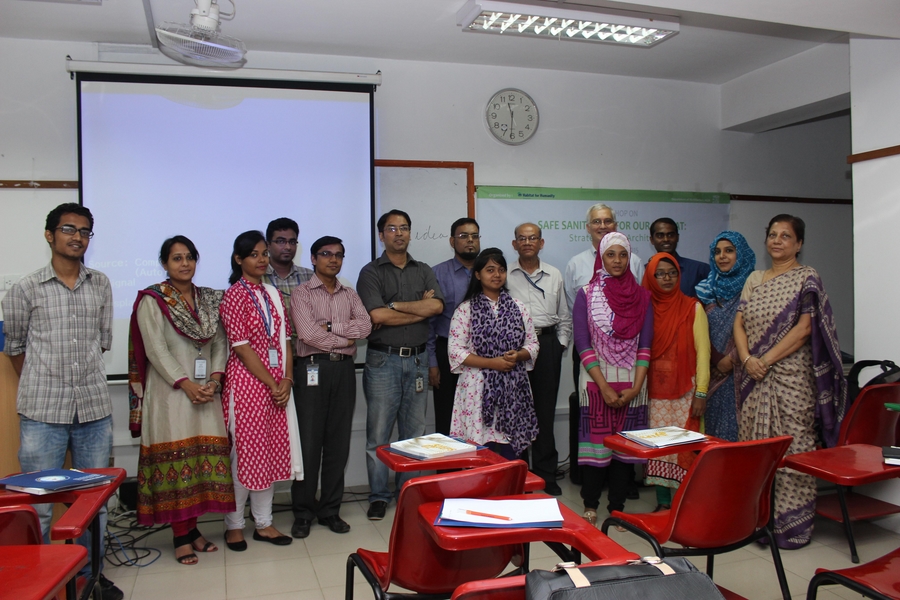 The Department of Architecture of the American International University-Bangladesh (AIUB) and Habitat for Humanity- Bangladesh (HFHB) organized a three-day long (June 11, 13, 14, 2015) workshop at the Department of Architecture AIUB in the title of “Safe sanitation for our Habitat: Strategies for Architects”. The prime objective of the workshop was to train young Architects to develop new understandings about low-income housing communities, and then focusing on sustainable sanitary facility construction policies and solutions that can work in the rural and urban low-income housing settlements. Habitat for Humanity- Bangladesh, an International non-profit organization branch, has been working in partnership with poor urban and rural families to build secure homes since 1999; they have also grown expertise in providing safe sanitary facilities for the low-income communities.
