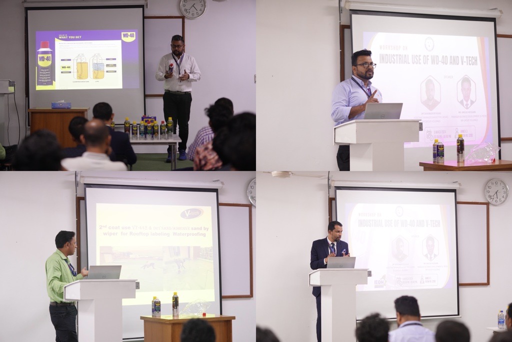 The Department of IPE, in collaboration with the IEOM AIUB Student Chapter, recently hosted an informative and interactive workshop on "The Industrial Use of WD-40 and V-Tech". The aim of the workshop was to introduce students to the vast uses of WD-40, the variants of it available, and its significance in current global industries. A brief overview of V-Tech was also given, highlighting its uses in heat and waterproofing.