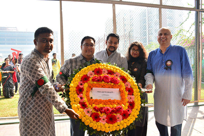 Hence, every year, on the 21st of February, like millions of Bengalis around the world, the members of the student clubs, faculty members, and administrative staff of the American International University – Bangladesh (AIUB) gather together to pay their respects to the language martyrs whose unyielding courage and selfless patriotism gave us the right to our mother tongue. Keeping the tradition, this year, the university clad in black and white, commemorated the International Mother Language Day with wreaths and flowers in the Shaheed Minar on campus.