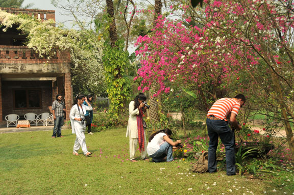 The 13th. of March 2010 arrived as a glorious Saturday morning, and the class of Digital Imaging (Advertising and MCMA students) assembled, somewhat bleary-eyed, yet lacking no excitement, on the steps of Campus 7 of AIUB. Transports were ready; after everyone finally made it, and a few rounds of tea to perk us up, we rolled out at nine-thirty at Niaz Sir’s (our course teacher Mr. Niaz Majumdar) signal. The sun was shining true and bright, the wind was gentle and cool. And we took the scenic route: Ashulia through Uttara, then through the EPZ area. After cutting through some highway traffic, we finally managed to reach our destination: a heavenly garden on earth. As soon as we entered the garden, it felt as if we had been assaulted (visually) with the equivalent of an aesthetic war hammer. We were speechless. Once we overcame our initial shock from the sheer beauty of the place, it was no holds barred. And after a snack of hot shingaras and tea, we were out again, refueled and rejuvenated.