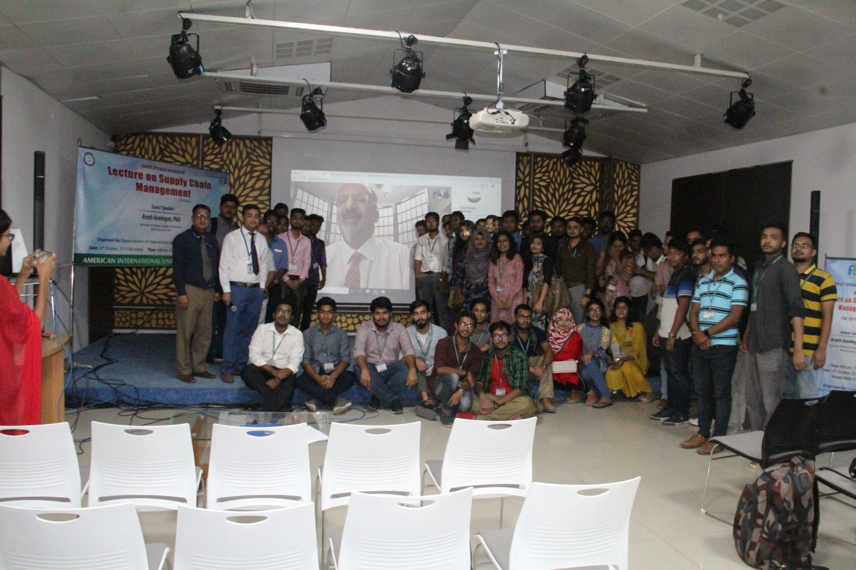 The Department of Operations and Supply Chain Management (OSCM), Faculty of Business Administration organized a Virtual Lecture session on ‘Supply Chain Management’ on 14 October 2019 at in the Media Studio of AIUB campus. Students of OSCM major courses and Operation Management (OM) core courses joined the session. Dr. Arash Azadegan, Associate Professor, Rutgers University, NJ was the resource person. The speaker very eloquently explained the basics of modern supply chain, flow process of supply chain, complexity in supply chain and relevant issues to the audience. One of the main objectives of this seminar was to provide our students to be virtually connected with an eminent professor of a foreign country with the aid of AIUB’s strong logistic support. Dr. Arash very much enjoyed the question answer session where students and teachers spontaneously participated.